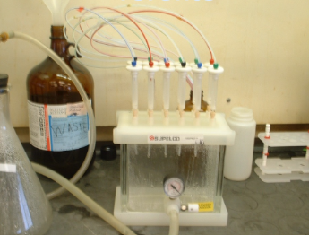The mobilization of anthropogenic endocrine disrupting compounds (EDCs) into the environment from run-off after land application of municipal biosolids is a concern for municipalities, regulators and the research community. Studies on EDCs such as estrogens, have found them in both the run-off, tile drainage from fields that have received biosolids, and in vegetables grown on biosolids amended sites. This project studied the use of in-vitro bioassays Estrogen Receptor Chemical-Activated LUciferase gene eXpression (ER-CALUX) method to complement chemical analysis using to liquid chromatography-tandem mass spectrometry (LC-MS/MS). Should results of ER-CALUX above a threshold value, samples will then be subjected to LC-MS/MS analysis. Therefore, facilitate the workload of LC-MS/MS analyses. We analyzed biosolids samples collected from waste water treatment plants by ER-CALUX and LC-MS/MS at the low part-per trillion level (ng/L, ppt) detection limits for compounds of known estrogenic effects (e.g., bisphenol A, equilin, estrone, β-estradiol, estriol and 17-α-ethinylestradiol).
